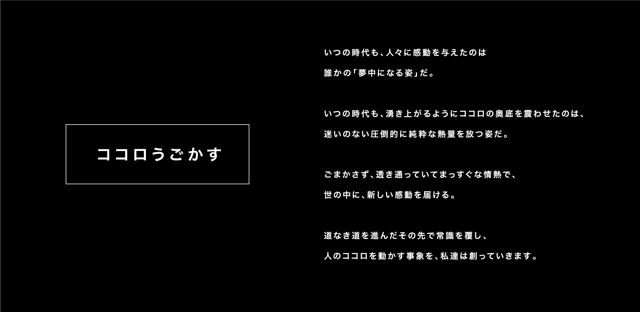 さらに、代表の想いをストーリーに乗せて言語化し、周りへ広がりやすい言葉の表現に落とし込んでいきました。(コーポレートサイト参照)、合わせてその想い達をビジュアルで表現し、コーポレートアイデンティティを完成させていきました。